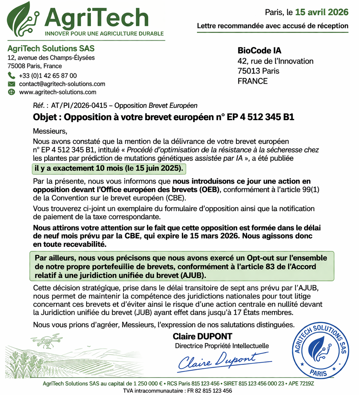 Contexte : Vous êtes avocat spécialisé en PI. La start-up “BioCode IA” vient vous consulter. Elle a développé “GenoPredict”, une IA qui calcule des mutations génétiques de plantes. En examinant leur dossier d’entreprise, vous découvrez plusieurs documents (Annexes 1 à 5). Vous devez mener une analyse juridique rigoureuse de chaque visuel pour alerter vos clients sur leurs erreurs ou préparer leur défense. Toutes les réponses doivent être vulgarisées mais juridiquement fondées.